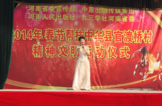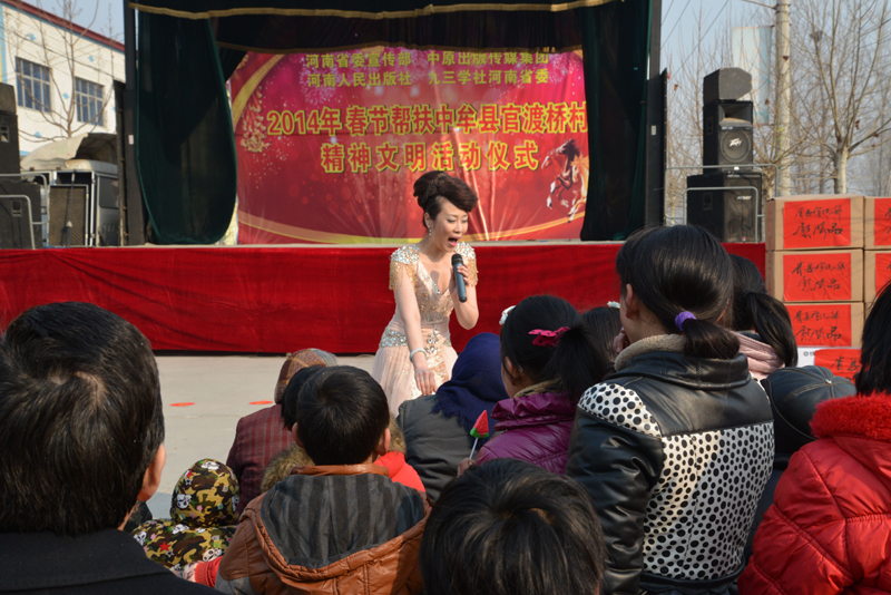 省委宣傳部副巡視員杜瑞明代表省直四家單位講了話,向官渡橋村村民送上節(jié)日的祝福。隨后,慰問團(tuán)的領(lǐng)導(dǎo)向官渡橋村農(nóng)民群眾和小學(xué)生贈(zèng)送了文體用品。由省委宣傳部邀請(qǐng)的薛青、郝曉冬等省內(nèi)多位知名演員為村民們表演了歌舞《田野里的春天》、豫劇《朝陽溝》選段、相聲《大腕研究》、嗩吶《百鳥朝鳳》等七個(gè)精彩的節(jié)目。在近兩個(gè)小時(shí)的演出中,臺(tái)上演員們精彩的表演,博得群眾的陣陣掌聲。省委宣傳部機(jī)關(guān)黨委專職副書記李憲林、創(chuàng)建處處長(zhǎng)張德偉揮毫潑墨,現(xiàn)場(chǎng)為鄉(xiāng)親們義寫春聯(lián)。省九三學(xué)社邀請(qǐng)的省醫(yī)療專家為鄉(xiāng)親們傳播健康衛(wèi)生知識(shí),現(xiàn)場(chǎng)檢查治療。中原出版集團(tuán)和河南人民出版社為鄉(xiāng)親們贈(zèng)送了科技圖書讓大家過春節(jié)時(shí)學(xué)習(xí),整個(gè)慰問活動(dòng)場(chǎng)面熱烈,氛圍濃厚。