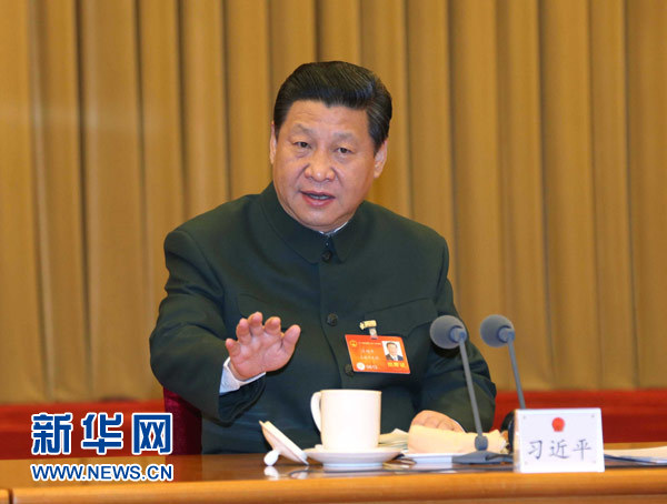3月11日,中共中央總書記、國家主席、中央軍委主席習近平出席十二屆全國人大二次會議解放軍代表團全體會議并發(fā)表重要講話。新華社記者李剛攝
